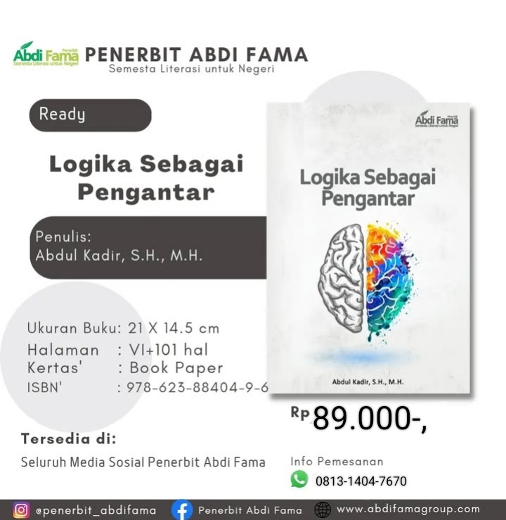 Buku ini mengupas tuntas penjelasan logika, dari mulai terminologi logika, objeknya, manfaatnya, hubungannya dengan ilmu-ilmu yang lain, dan hal-hal lainnya yang terkait dengan ilmu untuk menemukan kebenaran tersebut. Pembahasan disampaikan dengan mudah dan cocok untuk pembelajaran tingkat dasar di Perguruan Tinggi dan tingkat menengah. Selamat membaca!